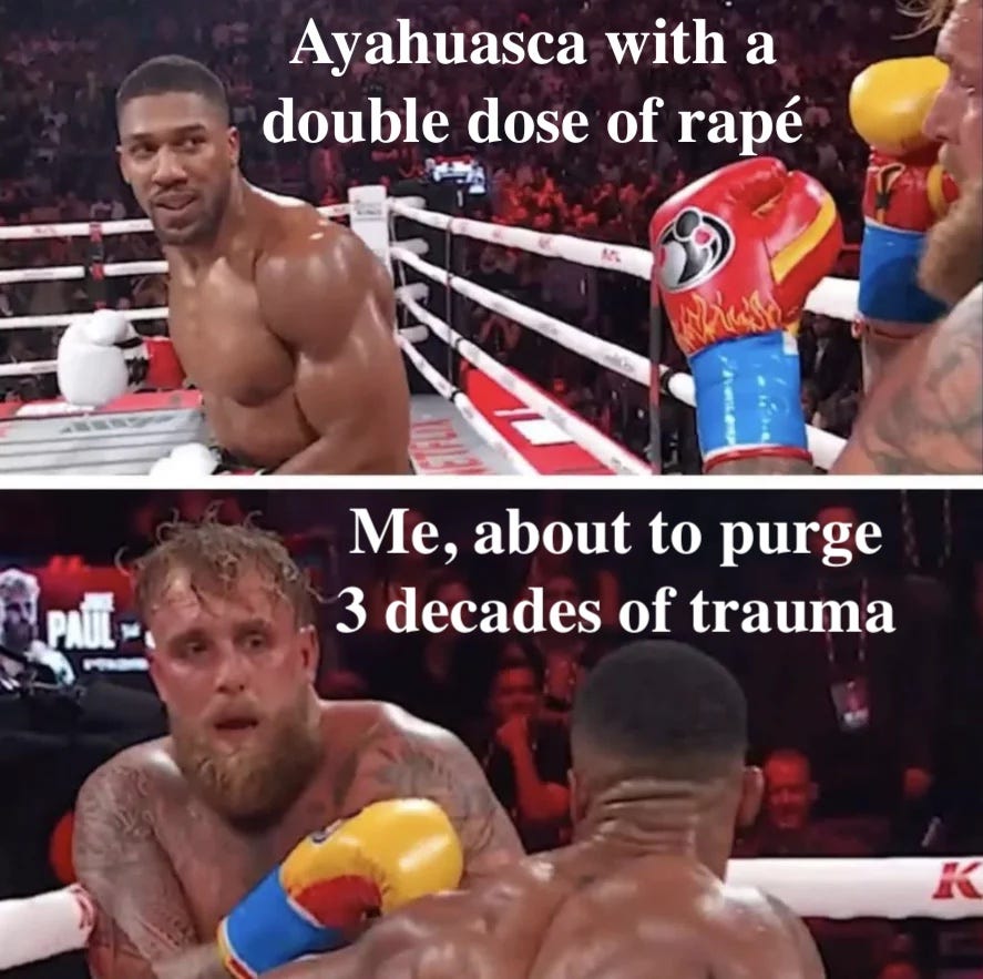 On New Year’s day 2022, during a consecutive night of ayahuasca and immediately following a large double-dose of rapé (a ceremonial tobacco shot up your nose); I purged my gender.